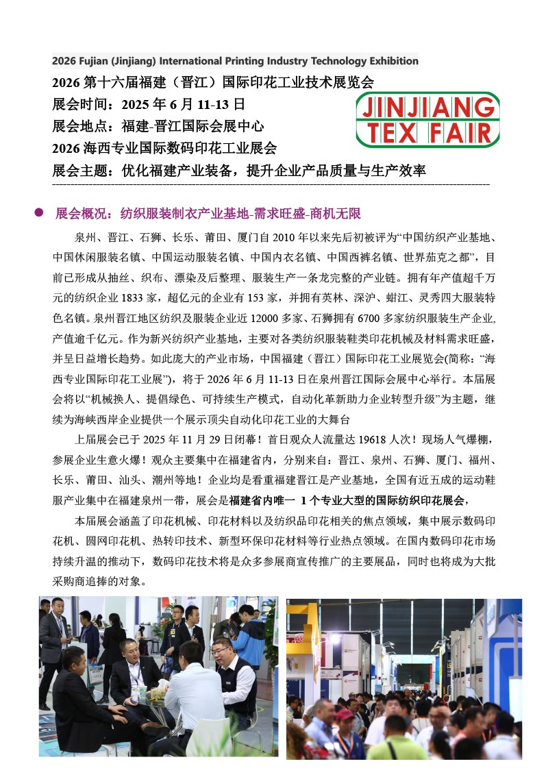 2026第十六届福建(晋江)国际印花工业技术展览会